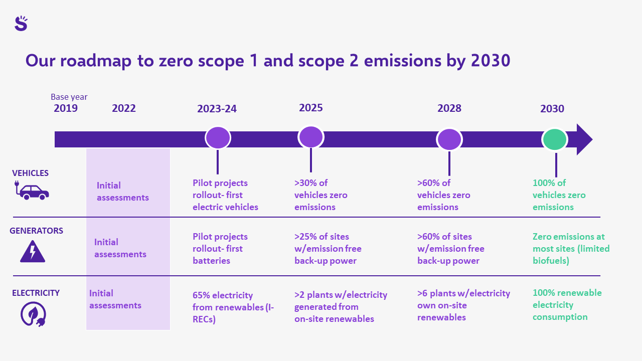 In 2022, we will identify and prioritise which power plants should first invest in zero emission technologies such as battery storage to replace diesel generators and electric vehicles to replace diesel vehicles. We will also integrate climate as a competitive criterion in our purchasing activities and continue regular engagement with our suppliers on climate change.